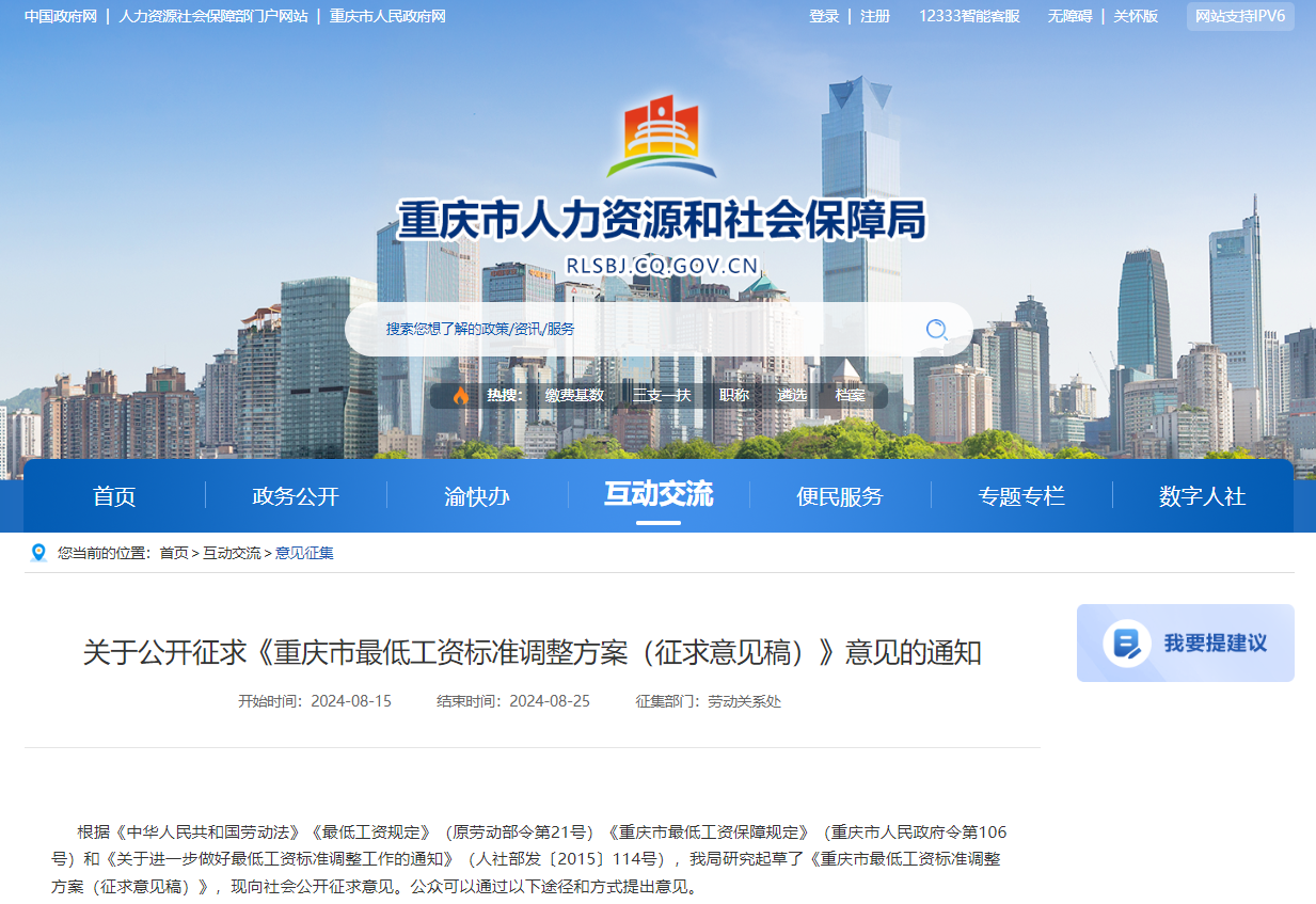 重庆市最低工资标准调整方案,请你提意见!