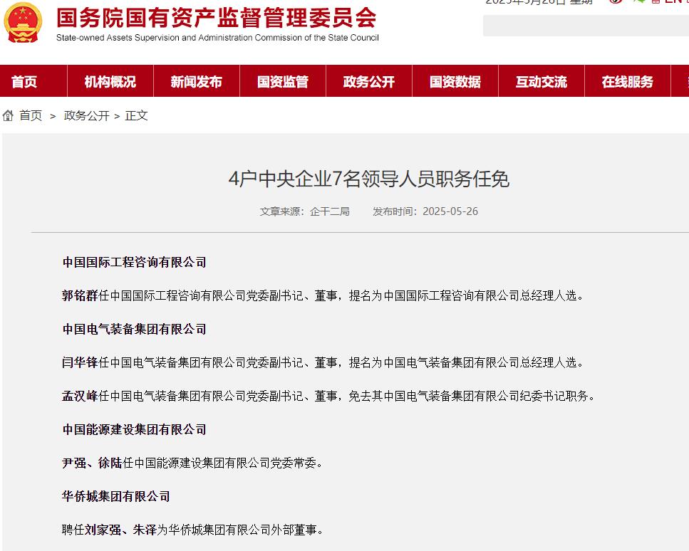 4户中央企业7名领导人员职务任免公布