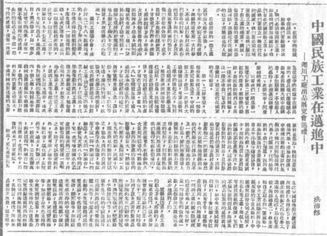 ▲1942年1月11日,《新华日报》发表通讯《中国民族工业在迈进中——迁川工厂出品展览会巡礼》。(西南政法大学新闻传播学院供图)
